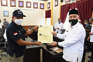Penyerahan sertifikat pengelola gudang SRG yang baru ini diserahkan oleh Kepala Bagian Penguatan dan Pemberdayaan SRG Bappebti, Yuli Edi Subagio, dan diterima langsung oleh Bupati Aceh Tengah, Drs. Shabela Abubakar di ruang kerjanya, Rabu (15/07).
